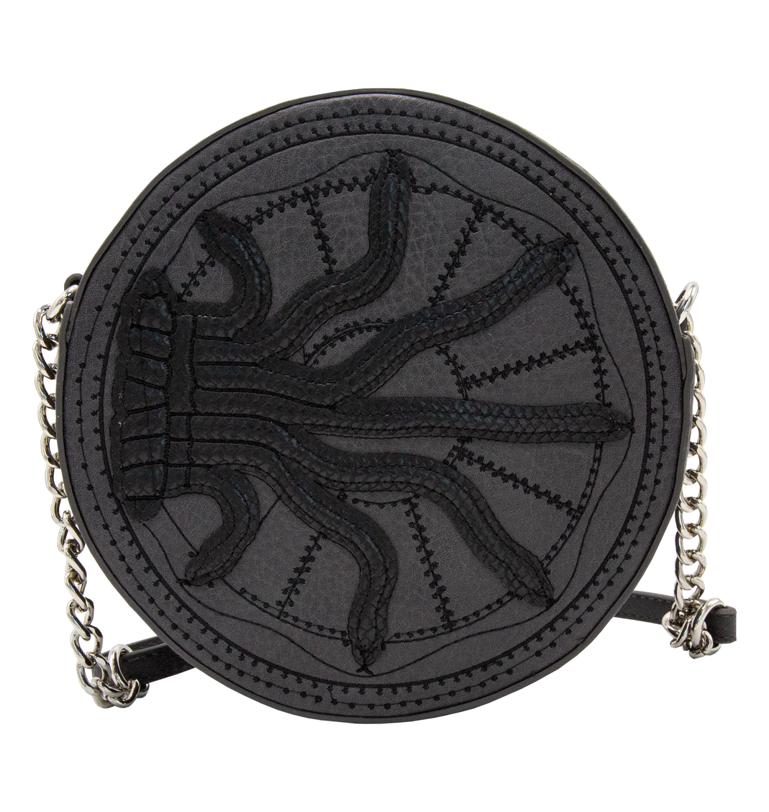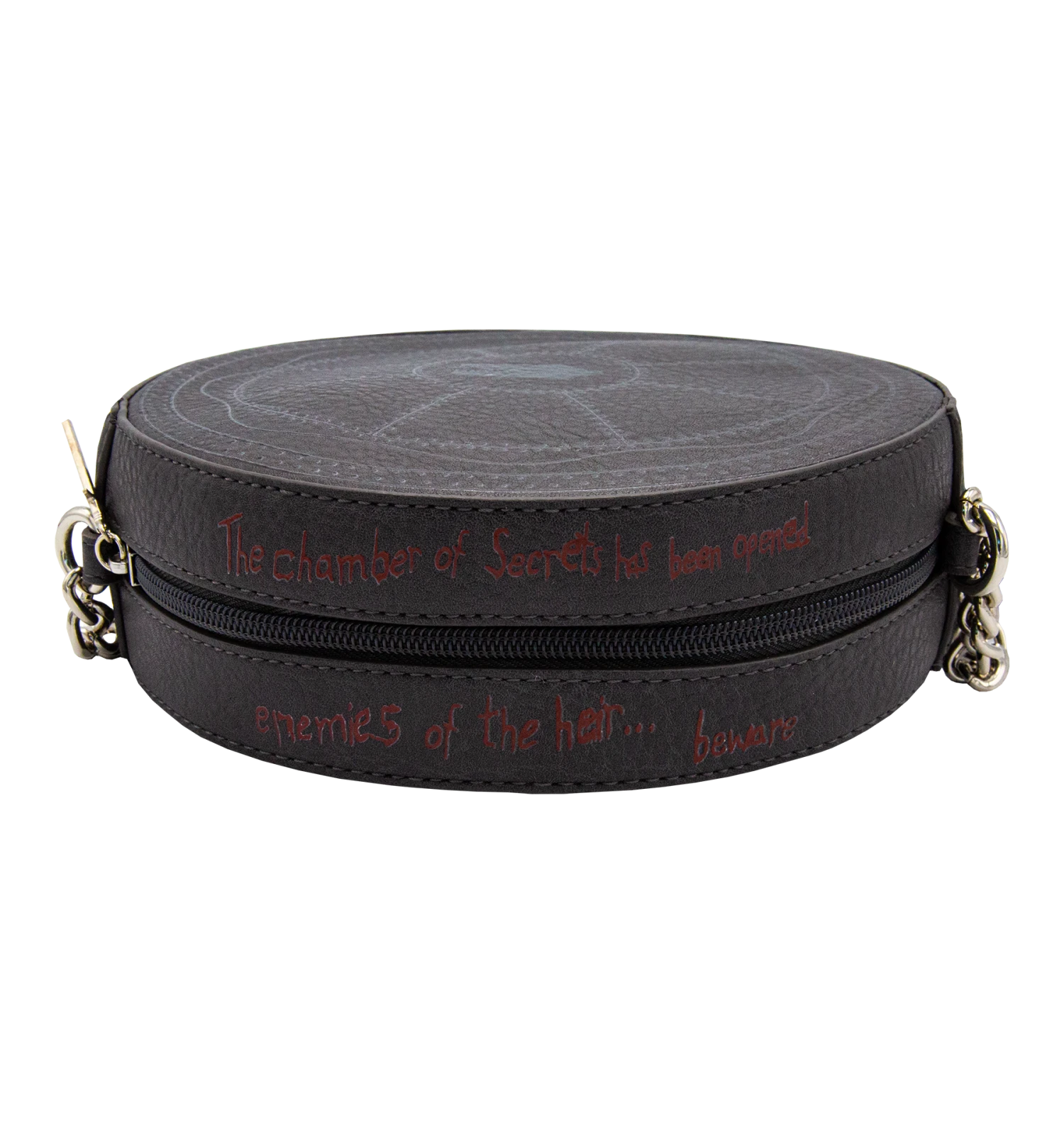 Embrace the unknown and let theĀ Chamber of Secrets Crossbody BagĀ beckon you into a world of dark magic and intrigue!Ā Crafted from polyester lining and a durable grey PU exterior, this bewitching circular bag boasts a sinister appearance reminiscent of the infamous front door to the Chamber of Secrets from the Harry Potter films.