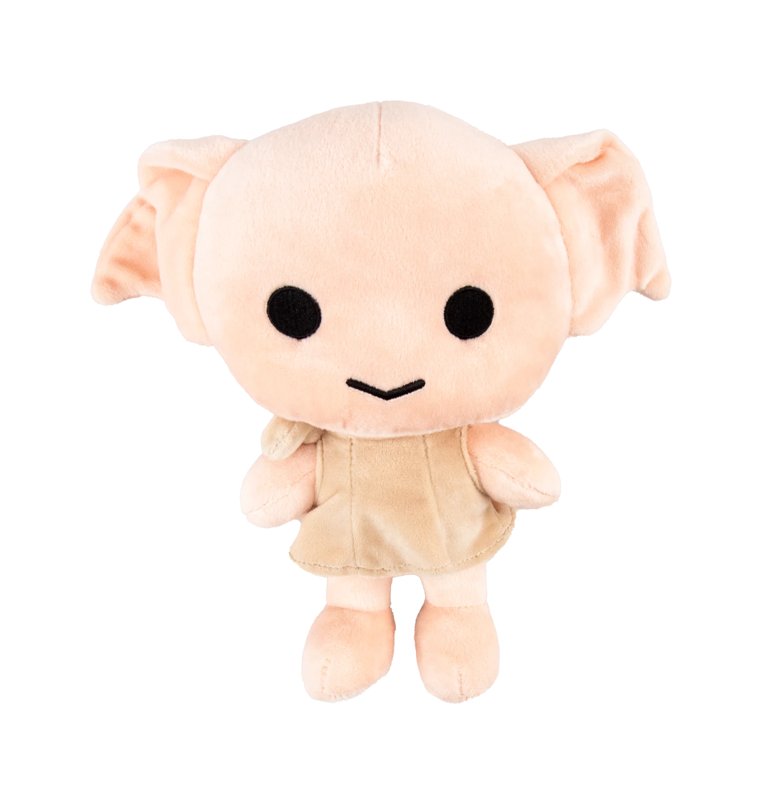 The small figure of Dobby comes complete wearing his tattered and worn pillow case tunic, made of a soft brown velvety material. He features super cute button-style eyes and floppy oversize ears in a cartoon style.