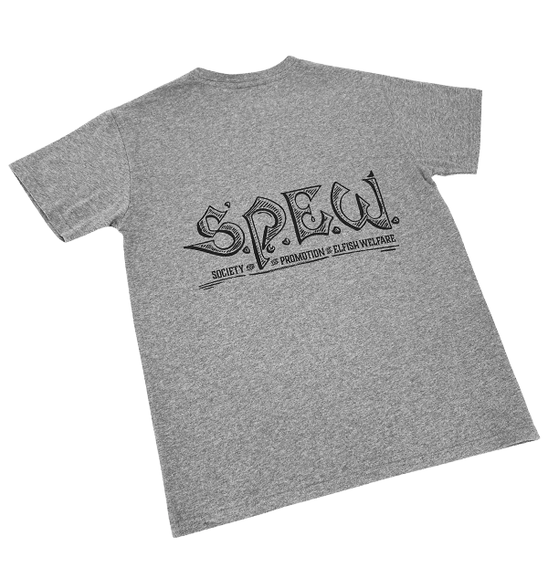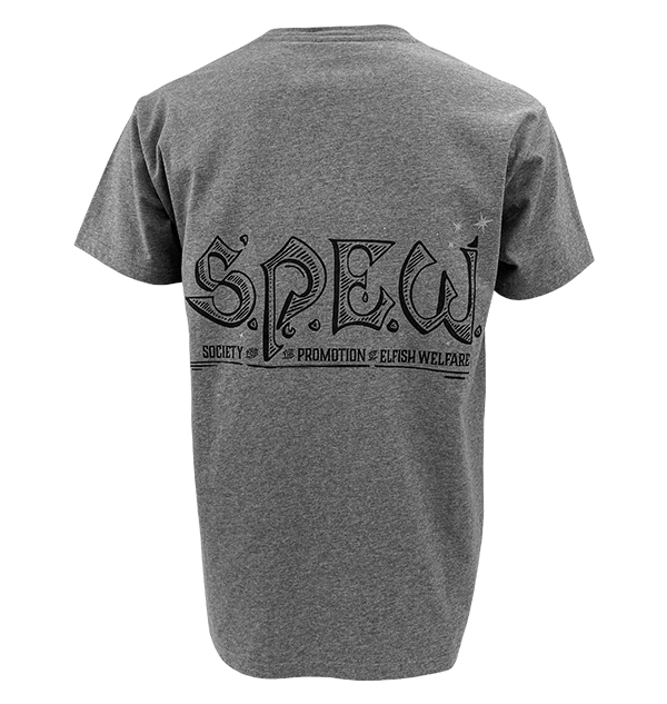 “Free the House Elves” lines the inner back collar in silver lettering. The super-soft t-shirt is available in adult sizes S, M, L and XL and is great for any witches or wizards looking to add a little dash of magic to their outfit. 100% cotton. Machine washable.