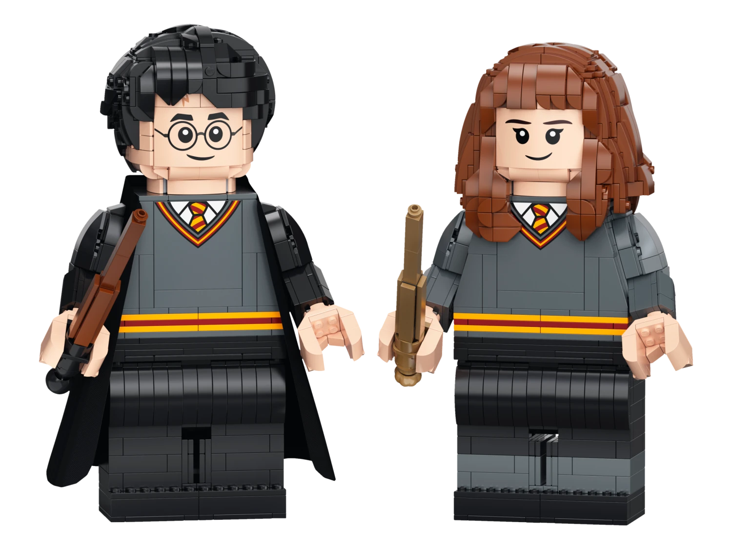 Super-size the Hogwarts action with these large Harry Potter and Hermione Granger brick-built models. Build the big – 10 in. (26 cm) tall! – figures, then move their arms and legs and position their wands to put Harry and Hermione into cool poses. The magical models will look amazing on display in your room.
