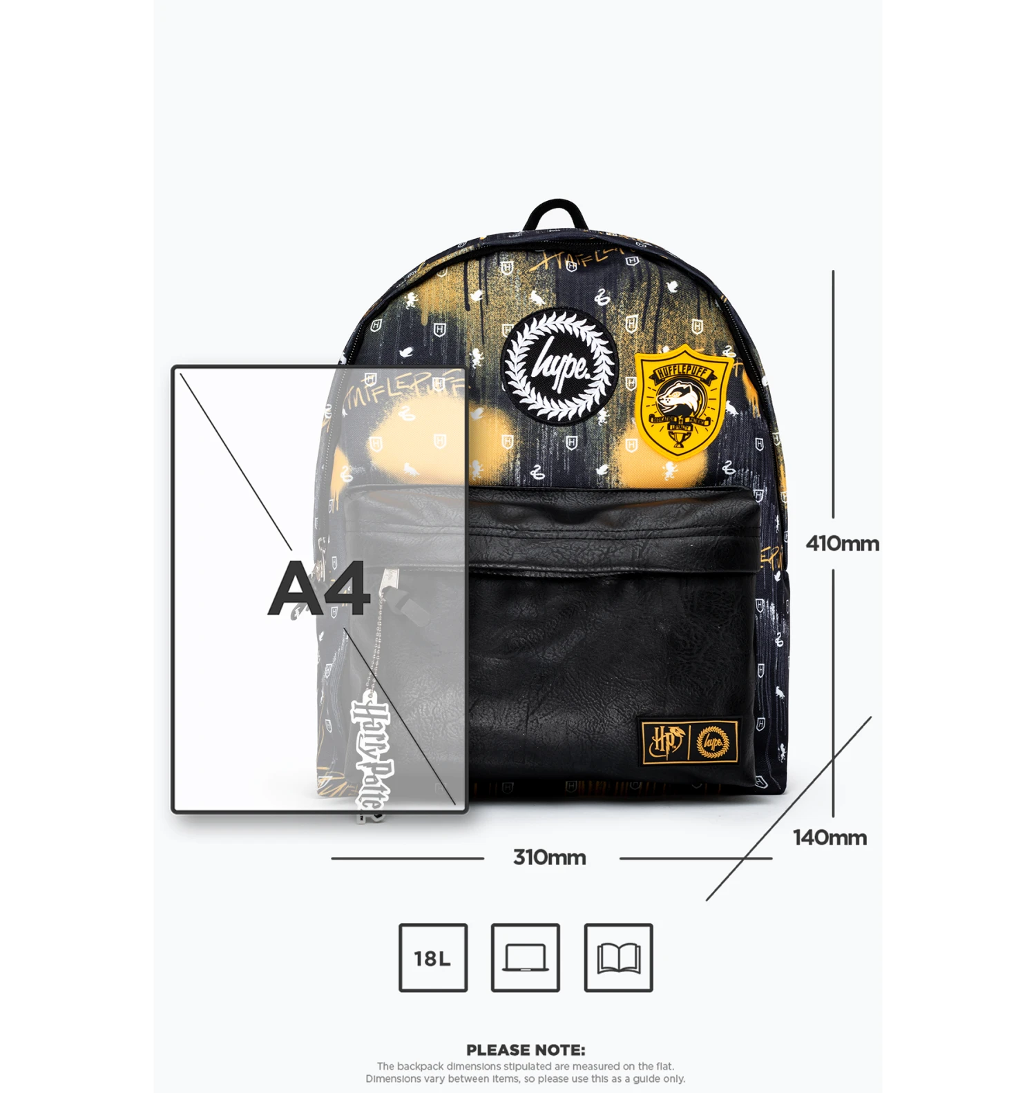 10 points to Hufflepuff! The HYPE. X Harry Potter Hufflepuff Backpack is made from 80% polyester 20% PU in our standard backpack shape.