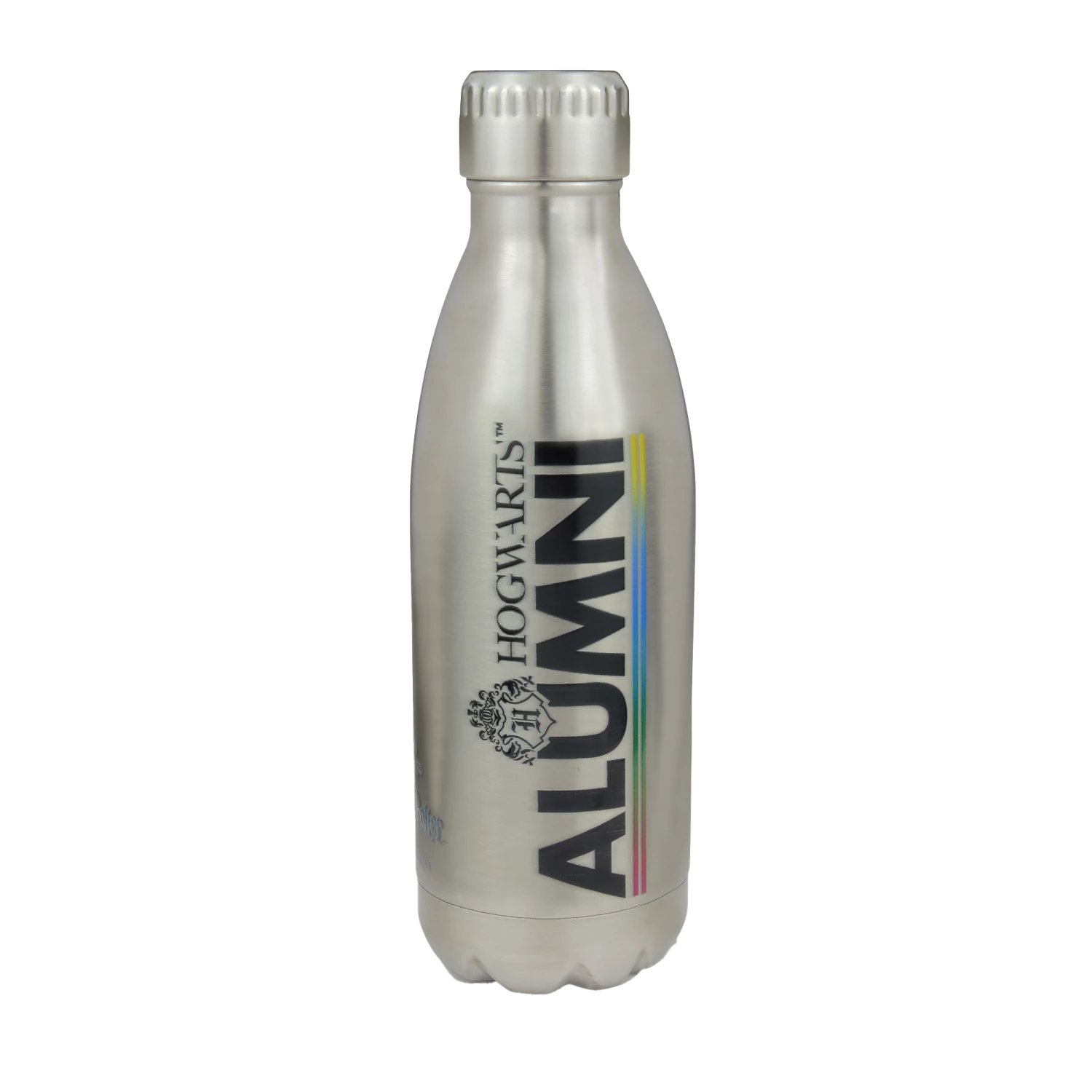On the back, you can find the words “Hogwarts Alumni”, with a small crest and underlined with a spectrum of the house colours. This flask is complete with a screw top to ensure a tight seal.