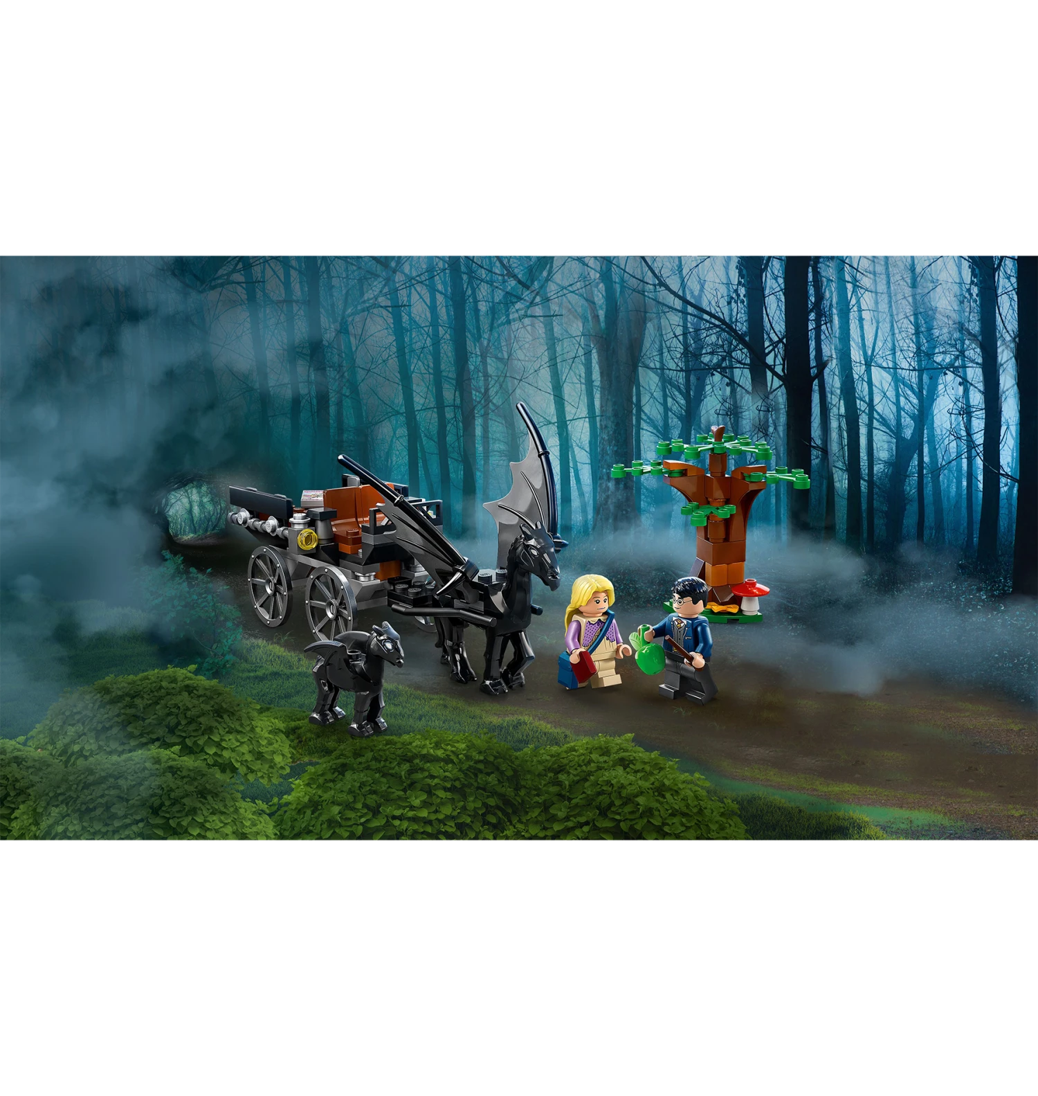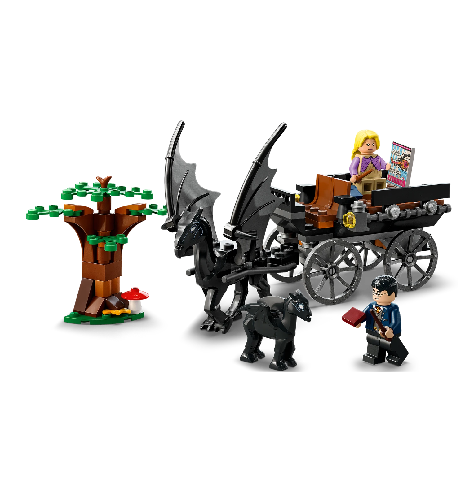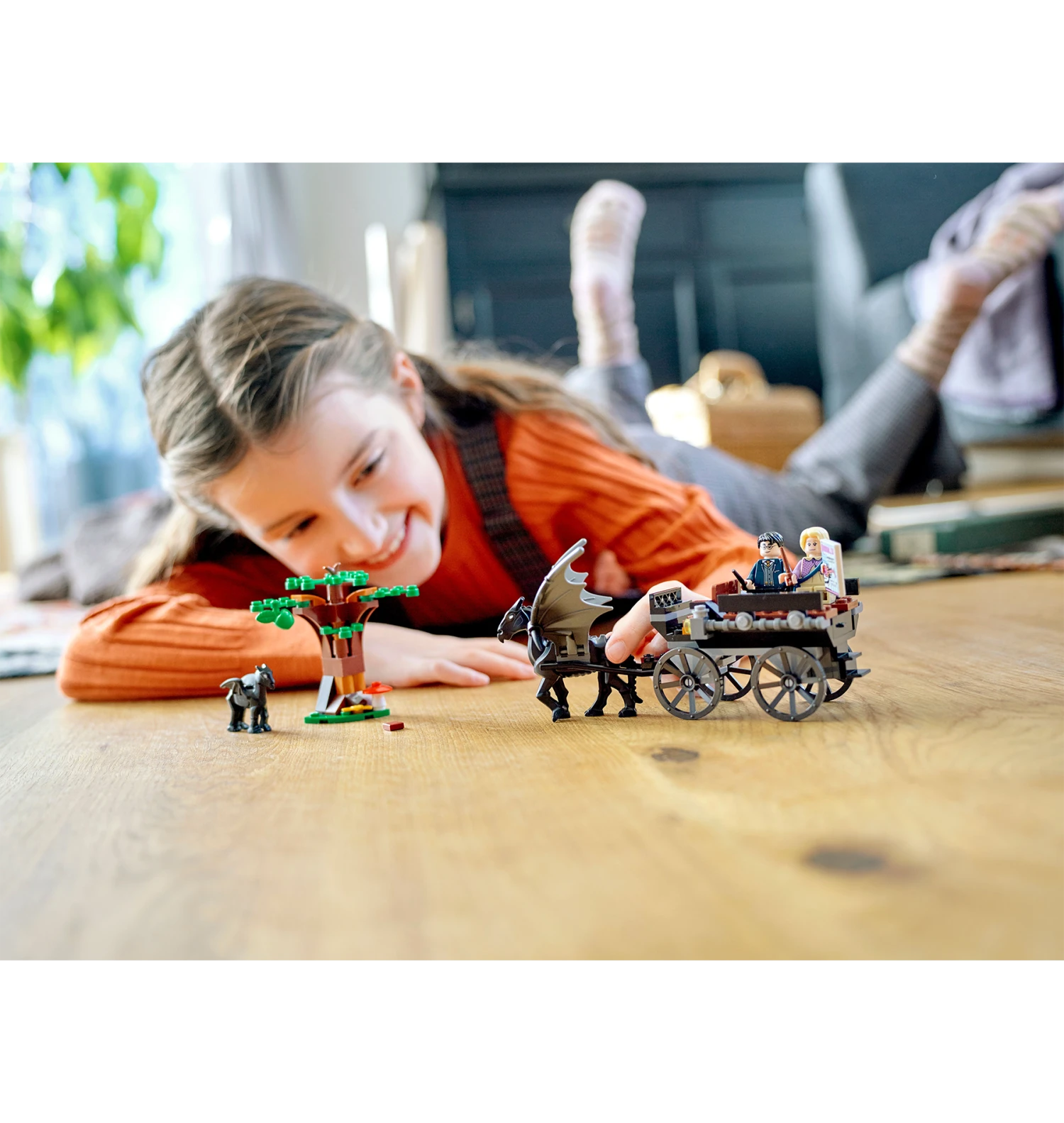 LEGO Harry Potter Hogwarts Carriage and Thestrals is a buildable toy for children aged 7 and up, with magical creatures to care for and carriage rides to enjoy for endless adventures.