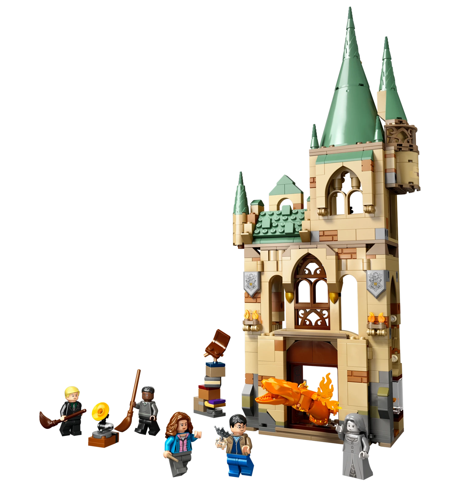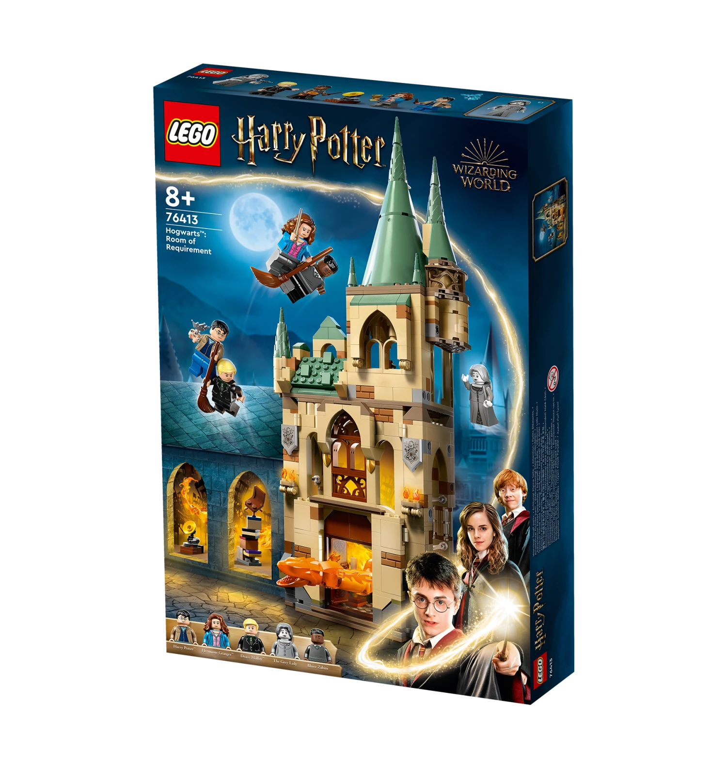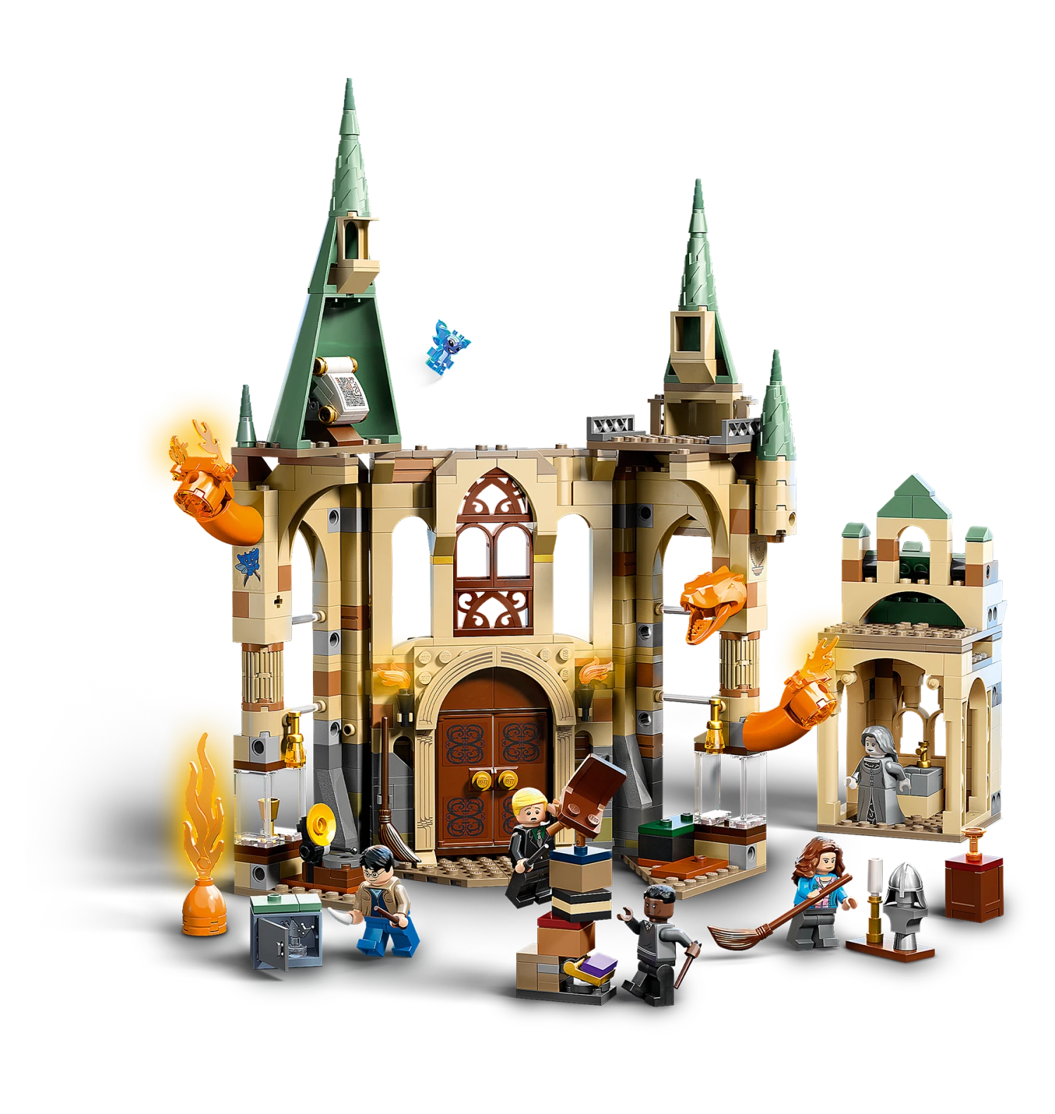 Kids can bring the escape scene from Harry Potter and the Deathly Hallows – Part 2 to life with 5 LEGO Harry Potter minifigures – Harry Potter, Hermione Granger, Draco Malfoy, Blaise Zabini and The Grey Lady – plus a Cornish Pixie figure and a buildable Fiendfyre figure that can be rebuilt into a fire serpent.