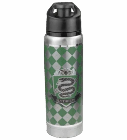 Hydration is very important to Quidditch players. Now you can display your Hogwarts house pride at Quidditch practice or wherever you go with this insulated 20oz bottle for both hot and cold drinks. Includes a black plastic screw-top lid with a flip cap. The bottle is decorated with a green and silver checkered wrap and features the Slytherin Crest on the front and “Slytherin” written on the back.