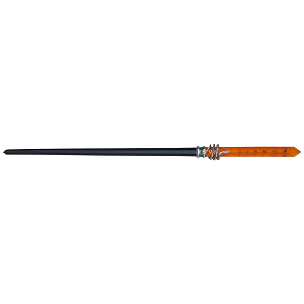 A wand inspired by the Slytherin Locket artefact, with an octagonal handle like the eight-sided locket. The wand is embellished with etched runes and includes an emerald-like stone, evocative of the locket’s decorative features. A proud Slytherin who seeks artefacts from the House’s past will not resist this wand.