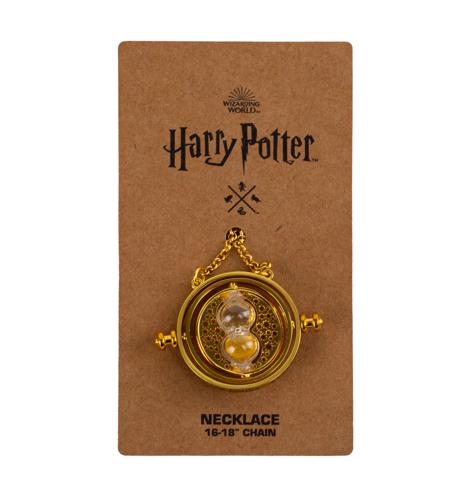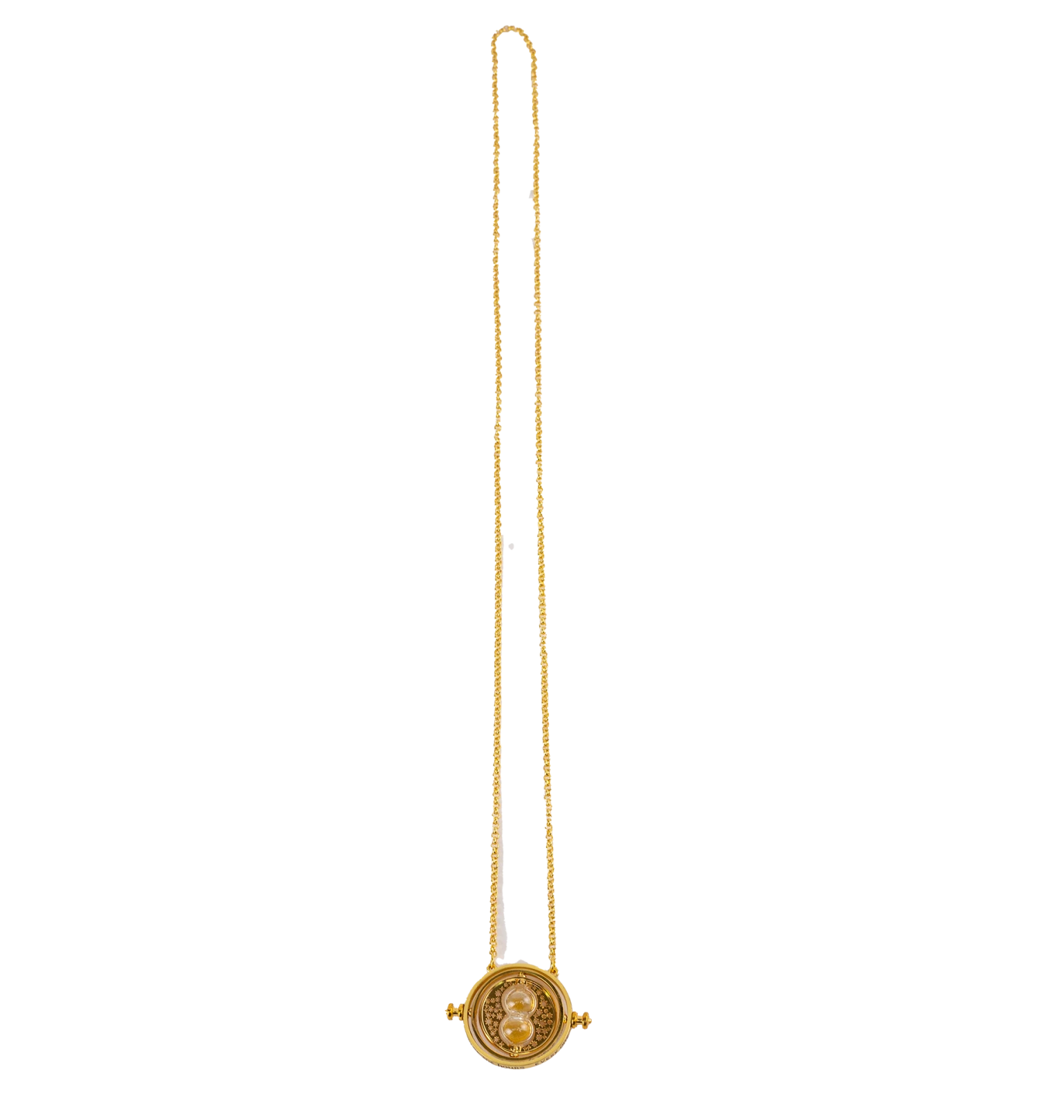 A rotating Time-Turner necklace featuring a design faithful to the original. Worn by Hermione Granger, the Time Turner played a huge part in the Prisoner of Azkaban film and is a magical device that allows whomever is wearing it to go back in time.